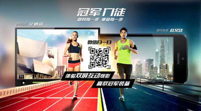 ——世界冠军Jenny Simpson和New Balance慢跑推广大使赵又廷,共拍“冠军门徒”双屏互动视频。粉丝可邀请好友扫描二维码,两部手机同步分别播放冠军版和门徒版,拼在一起即可观看完整故事,在播放过程中摇一摇手机,还可实现双屏互换。
