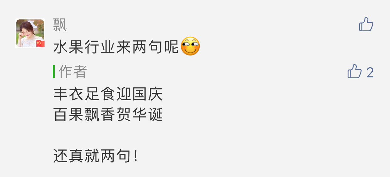 说实话,水果行业这句文案我就想了两分钟,我立马想到了“百果园”,然后想到“百果飘香”。