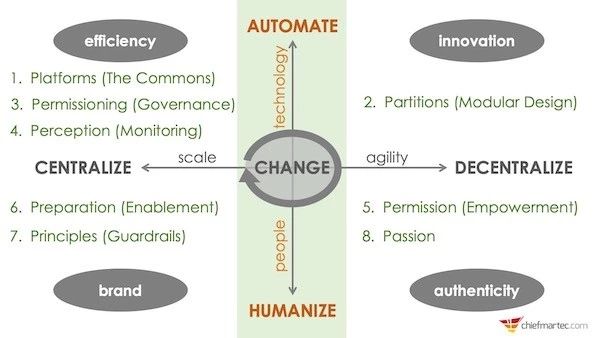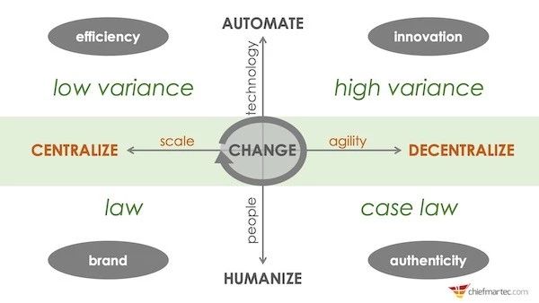 关于「核心中心化」与「去中心化」之间的平衡关系曾在「营销技术与运营的新规则」这篇文章中做了说明。