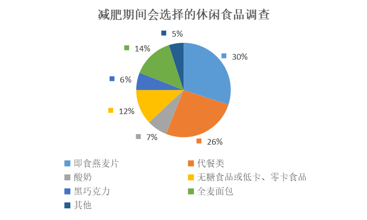 “每天起床第一句,燃烧我的卡路里”,大部分女生不是在减肥就是在减肥的路上,热量低,饱腹感强的食物成为首选,调查显示,有30%的用户在减肥期间会选择即食燕麦片,而有26%会选择代餐类。