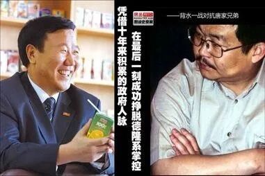 从上海的谈判桌回到北京,朱新礼跑到了顺义县县委书记办公室。进入顺义10年,他在政府积累了丰厚的人脉资源。他将对赌协议压到领导桌子上,“汇源遇到了问题,德隆想买汇源,我也想买德隆,银行贷款来不及。”第二天上午,两个亿就过来了。更为戏剧性的是,谈判之后去浙江貌似民间筹钱的唐万平,第二天回到上海突发脑溢血。看到哥哥的惨状,唐万新终于撒手了,“算了吧,把汇源卖给老朱吧。”就这样,朱新礼成为了汇源的绝对控制人。