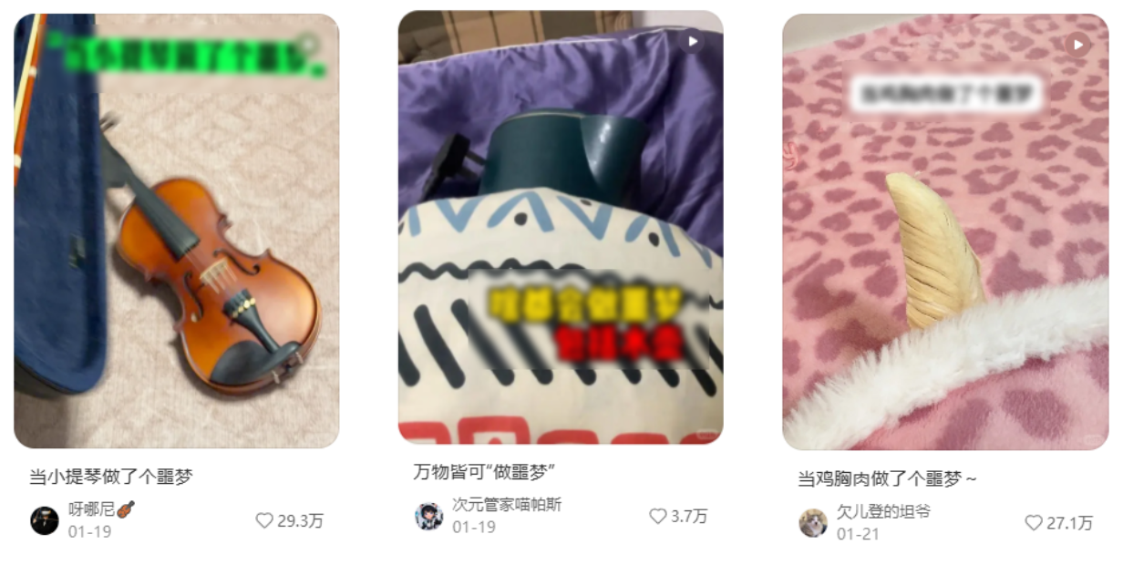 如果你最近在小红书刷到一只瑟瑟发抖的小提琴,或者一块因恐惧而蜷缩的鸡胸肉,不要惊讶,这是当下很火的短视频赛道——“当XX做了个噩梦”。通过拟人化视角解构日常物品的创意,正以极其魔性的方式席卷全网。
