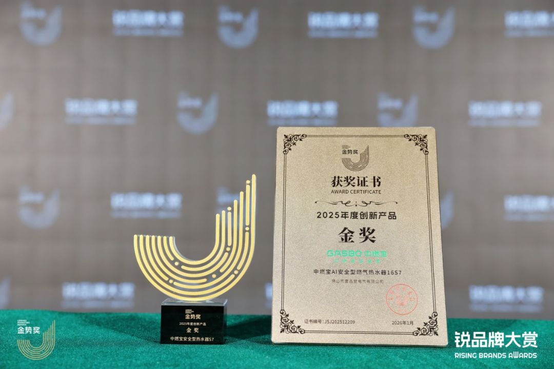 近日,品牌营销领域的超级盛典——第6届金势奖颁奖典礼在上海圆满落幕。中燃宝AI 安全型燃气热水器 16S7,凭借在安全防护、智能体验与健康升级三大维度的突破性创新,从逾千件申报产品中脱颖而出,成功摘得 “2025 年度创新产品” 大奖,其技术实力与市场价值获行业权威全面认可,成为燃气具领域创新标杆。