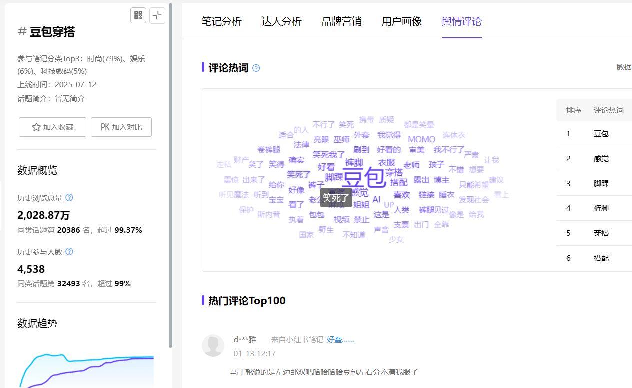 通过千瓜数据可以看到,#豆包穿搭 舆情评论里,没有容貌焦虑,只有满屏的“笑疯了”。 网友们不仅不生气,反而把这些穿搭当成段子发出来。