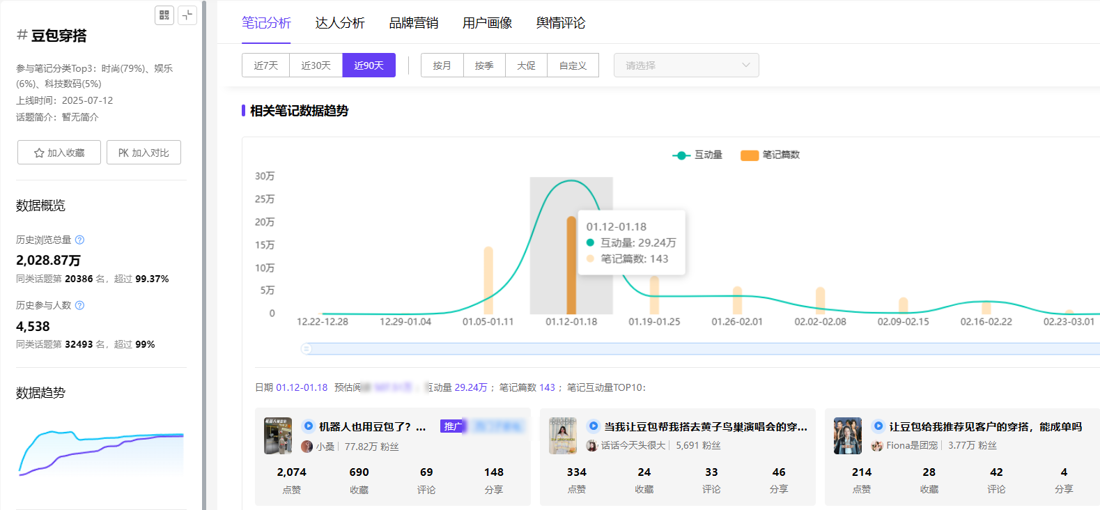 近期,#豆包穿搭 在小红书热度飙升,话题浏览量高达2000万+,相关笔记预估互动量迅速攀升。