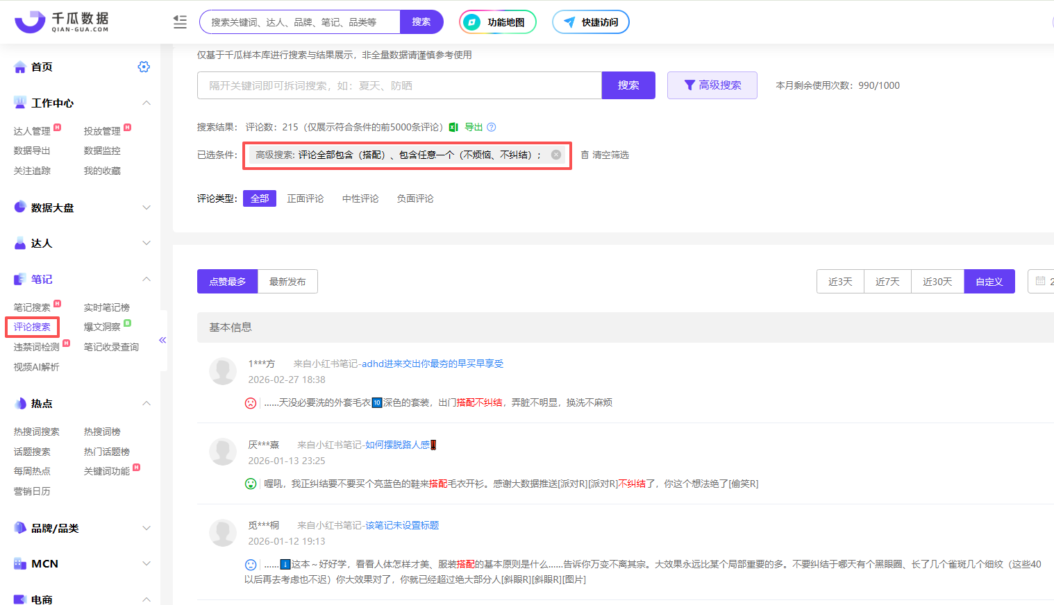 通过千瓜数据的评论搜索功能可以发现,许多人每天都会纠结和烦恼穿什么、怎么搭配。每天早上站在衣柜前发呆的15分钟,是当代打工人最耗费心神的时刻。
