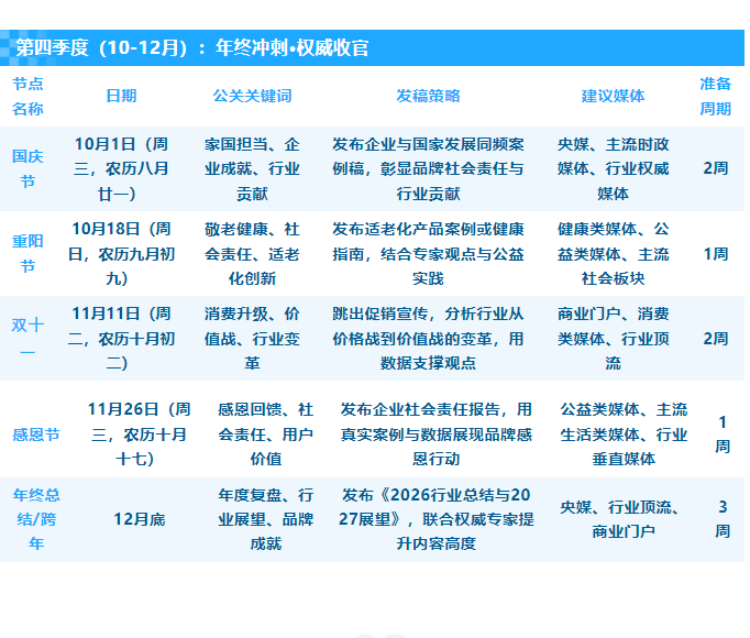 爆发期(节点期间):发布核心稿、专家访谈、案例解读,集中对接媒体,实现权威声量最大化;