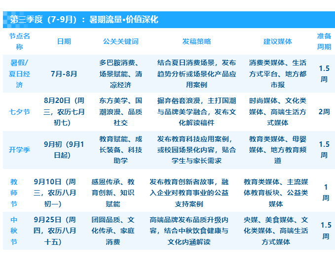 长尾期(节点后 1-2 周):发布总结稿、影响分析,如《618 复盘:高端品牌的突围之路》,延续传播效果。