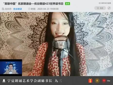 本年度的世界读书日,来自全国不同地区的9位朗诵名家,通过线上直播的形式为我们倾情呈现了一场精彩的朗诵演出,不仅让我们有机会倾听到专业的朗诵,也让我们感受到全新的不一样的中国力量。而这样一场适时的、主题明确的朗诵活动,也收获了近9万人次的观看人数,以及10万次的点赞数,取得了非常漂亮的直播成绩。