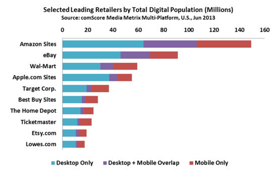 然而或许让零售商吃惊的是,对很多消费者来说,移动平台是他们平常一个月里接触零售品牌的唯一渠道。一份最近的comScore分析报告揭示,平均50强零售商的月访问者中有平均35%的人只从移动平台访问。这意味着不优化自己的移动浏览体验(最低限度)或引入移动应用的零售商就是在有效地拒绝他们三分之一的潜在顾客。