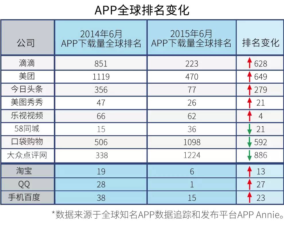 上述数据可以看出,滴滴、美团、今日头条最近一年的上升幅度居于前列。新兴产品将更多占据人们的使用时间。