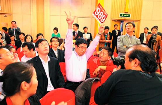 当起价3800万元的“新闻联播报时组合第六单元”被直接喊到1亿元,随即又有人立刻直接加到1亿3千万元时,连现场主持人都激动地大声说:“你们相信吗!这就是传奇!”