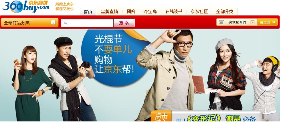 以数码产品起家的京东商城如今越做越大,服装配饰、家居百货是样样齐全。此外,京东还在最近热播的电视剧《男人帮》中内置大量广告,剧中主演孙红雷也成了京东商城的代言人。光棍节这么热闹的购物节日京东当然不会错过。这不,京东近年光棍节推出超低价1折起购风潮,涉及数码、服装、化妆品等多个领域。