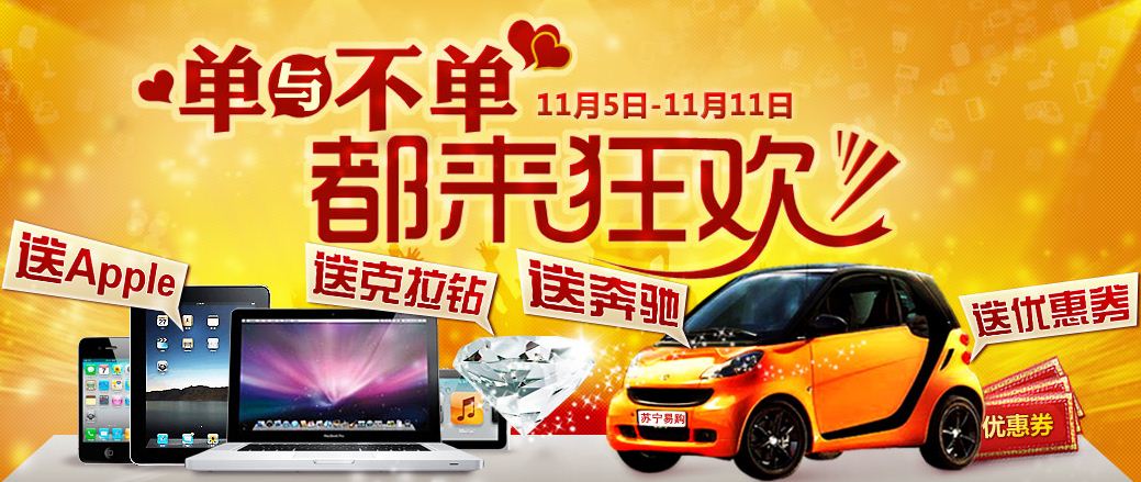 一年之中最火热的电商促销日,竟然是被人们戏称的光棍节。11月11日因为有4个1,称为光棍节、神棍节。光棍节产生于校园,并通过网络等媒介传播,逐渐形成了一种光棍节的文化。2011年的11月11日因为有三个11,更是被称为“世纪光棍节”,这个本来稀疏平常的日子也被各大电商用疯狂的折扣演变成为一场网上购物的狂欢。