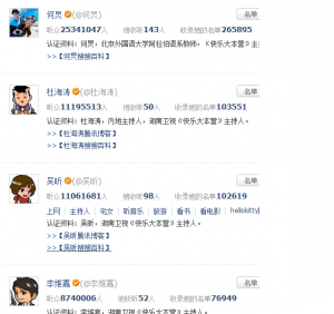 湖南卫视的“快乐大本营”节目是一档深受年轻观众喜爱的综艺节目,从开播至今一直保持着很高的收视率。其节目内容新颖是一方面,另外一个方面在于其宣传到位,“快乐大本营”的五位主持人“快乐家族”在腾讯微博上总共有粉丝近7800万,在每周六的节目播出之前五位主持人都会在微博上以文字、图片、视频形式发布本次节目播出的部分内容,这些内容是非常能吸引人眼球的节目爆料,然后通过粉丝间的互相转发,必然会吸引粉丝去关注本次节目,同时也会增加更多喜爱这个节目的人关注这五位主持人,从而获得更多的电视观众。