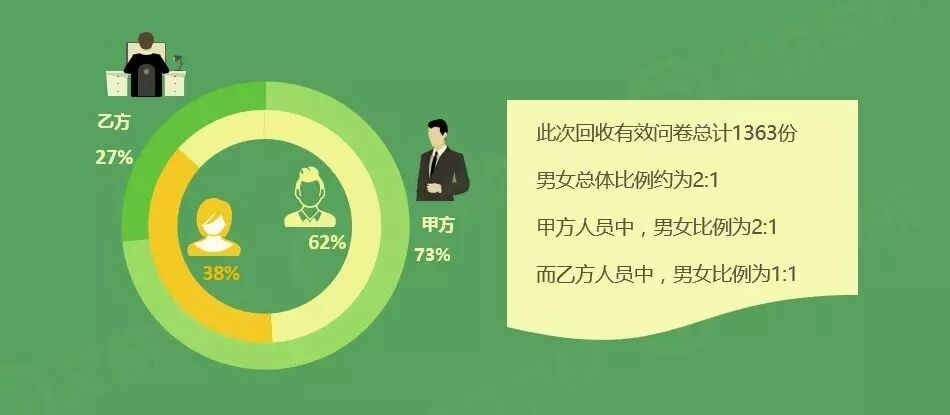 而值得关注的是,女性从业人员中,有2/3是乙方人员。