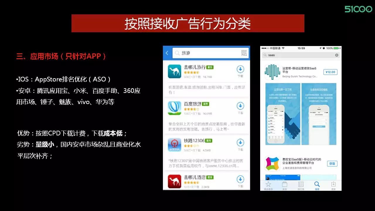 像安卓中应用宝、小米这些应用市场的优势是什么呢?应用市场大多是按照CPD下载计费,相比前面两个渠道来说,下载成本是更低的。