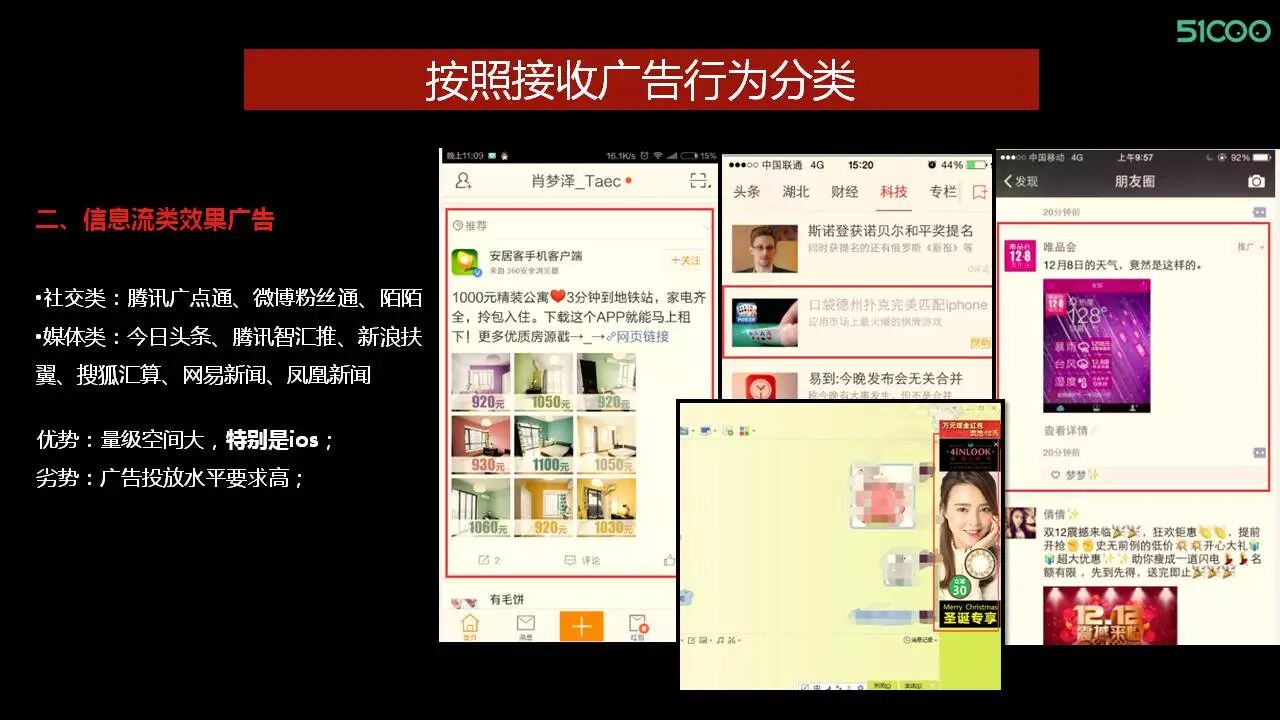 这种广告的优势在于流量空间比较大,腾讯是百亿的流量,头条或微博也是亿级单位的流量。能容纳的广告主特别多,进价成本也稍微低一点。