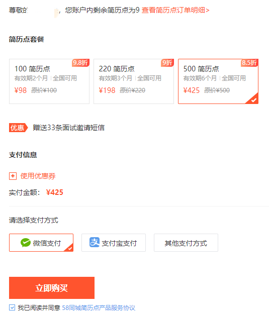 例如58同城上面,充值425元,可以获得500简历点(简历点是网站自己的积分系统),使用简历点可以下载这些简历。