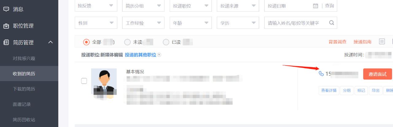 例如在58同城上面,求职者投递简历后,企业是免费可以看到对方的简历信息和联系电话的。
