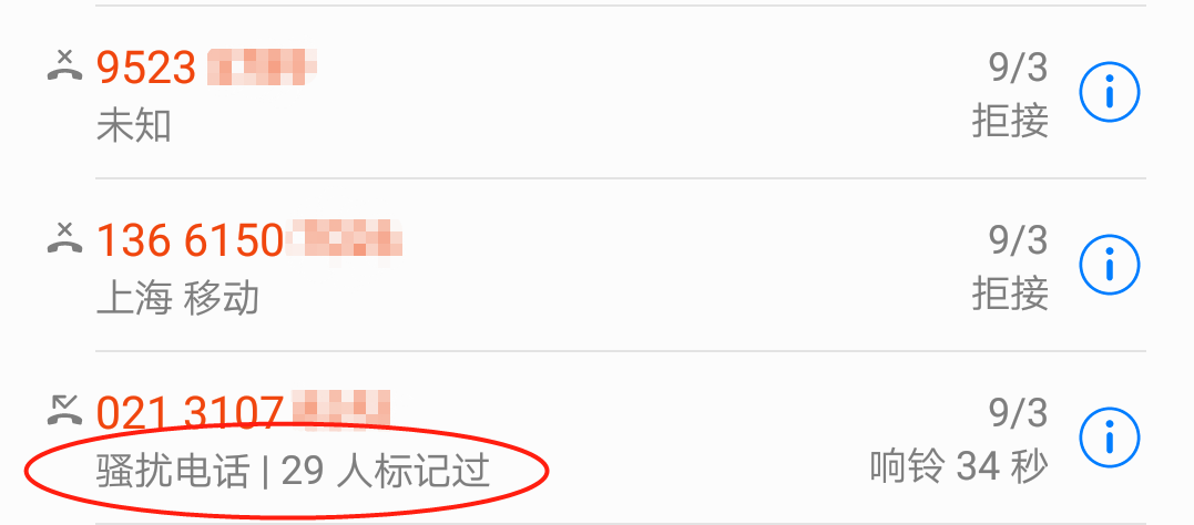 现在的手机一般都自带标记类型的功能,如果没有也可以下载相关软件。多数时候接到的骚扰电话,都自动标记了类型,例如“骚扰电话”、“营销诈骗”等。