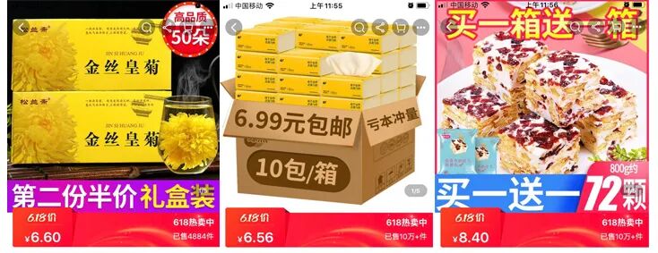 大量产品堆积+第二份半价+买一送一,让你不自觉的就点进去了,由此完成了第一步,进店!