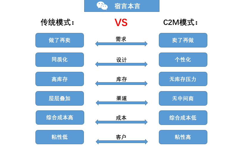 C2M 是英文( Customer-to-Manufacturer) 的缩写,直译过来就是消费者直达工厂,说人话就是:没有中间商赚差价。 (如下图)