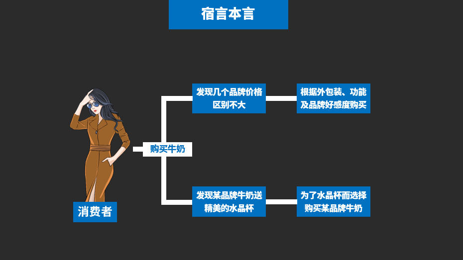 这种为了赠品购买商品的消费行为并不少见,本质上就是商品的差异化较低,为了将商品销售出去而附赠产品的一种营销手段。这种赠品对消费者的购买决策有着如下图的影响。