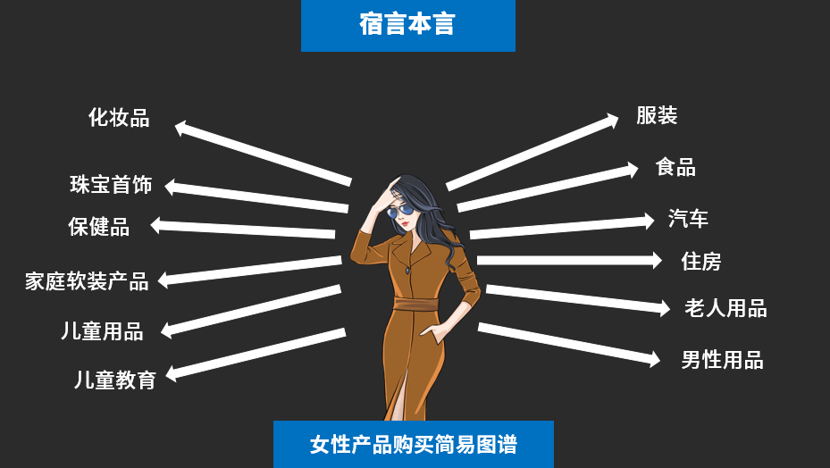 女性一直是消费的主导力量,她们在化妆品、珠宝首饰、食品等消费领域中支撑着消费市场,在汽车、住房等消费领域也发挥着越来越大的作用。在家庭消费中,现代女性往往是消费的决策者和主要影响者。由于承担着母亲、女儿、妻子等多种角色,她们不仅仅对自己所需的消费品进行购买决策,同时还是家庭用品、儿童用品、老人用品、男性用品等商品的购买者。