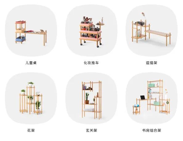 依据这套体系,消费者可以根据自己的居住环境和需求,按照自己的心意和创意,自由拼接、组装自己需要的家具,打造一个自己独一无二的家具和家。如果搬了家、换了房,那就按照新房子的要求,拆开重新组装一下就行了。