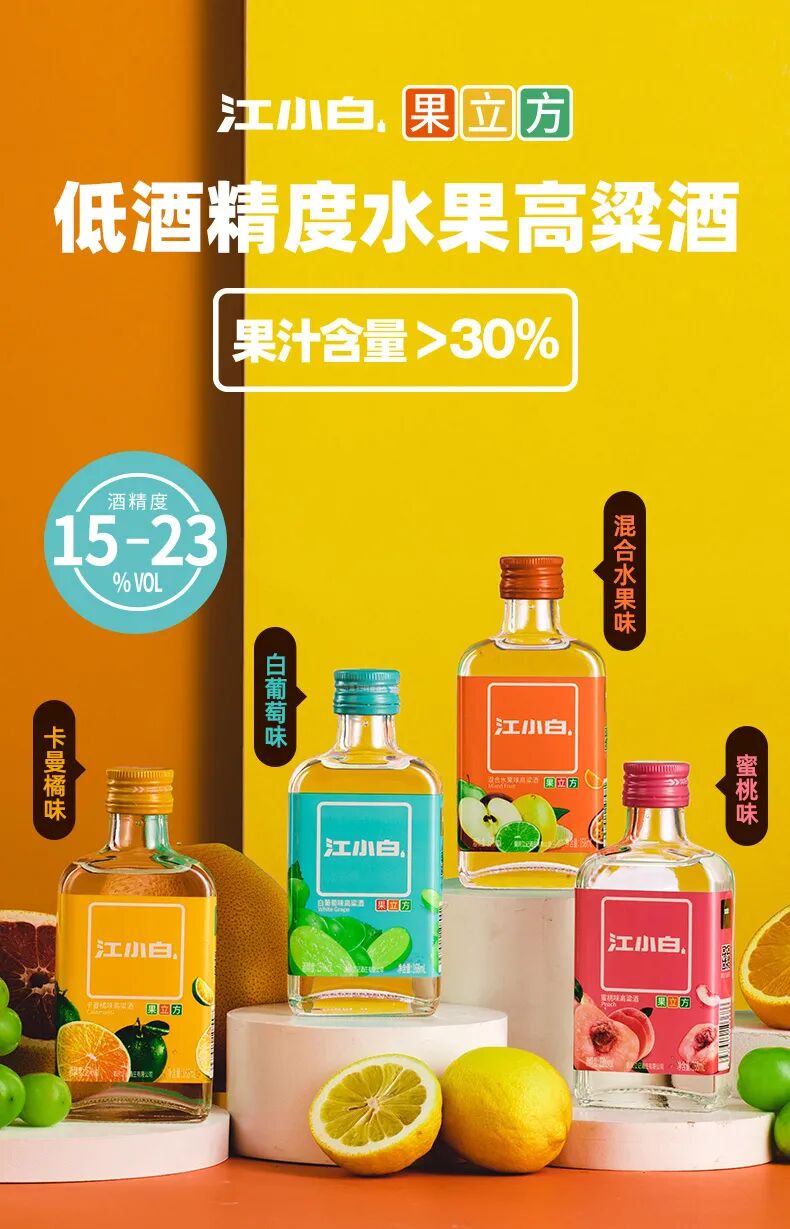 既然年轻人喝高度白酒咽不下去,所以江小白还重点打造了低酒精度的水果味高梁酒,包括15度的白葡萄味、23度的蜜桃味等四种口味。
