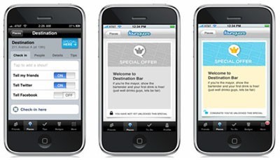 以Foursquare为例,商家可以通过Foursquare发布自己的促销活动信息,而且信息将根据用户的身份不同而有不同呈现效果,如果你已经是该地的市长,你会看到最右边彩图的内容,否则会看到中间的灰图。而如果是彩图的时候,你就可以直接凭彩色Offer享受店家的折扣优惠。
