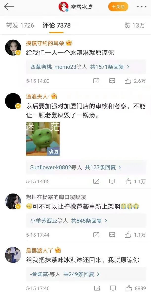 8、蜜雪冰城的品牌局限和品牌效果,如何取舍,能让人想秃噜了头。几天前,因为有门店被查出有违规行为,蜜雪冰城很快就在微博道歉。