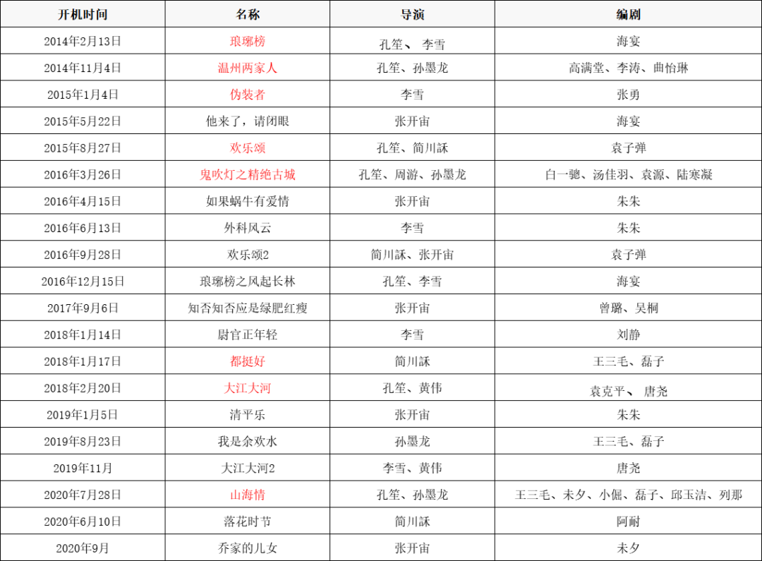 剧作名单中热播口碑剧(标红色),几乎都有一个导演的名字——孔笙。而口碑扑街的剧作,则来自二代导演。