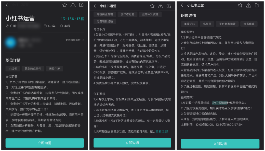 以目前来看,很多公司都把小红书当成其中的一个推广渠道而已,所以写着的是新媒体运营。