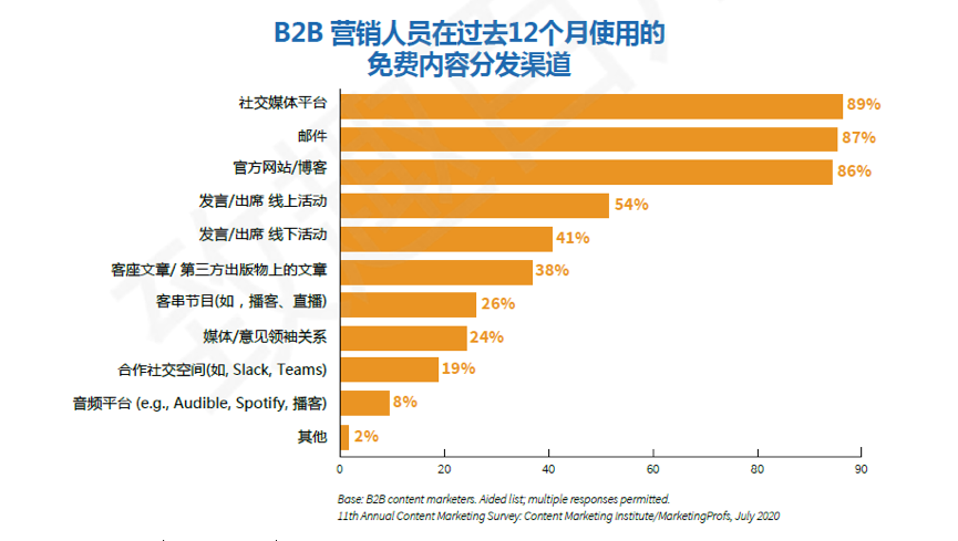 我们以B2B为例,根据致趣百川2021年内容营销白皮书显示: