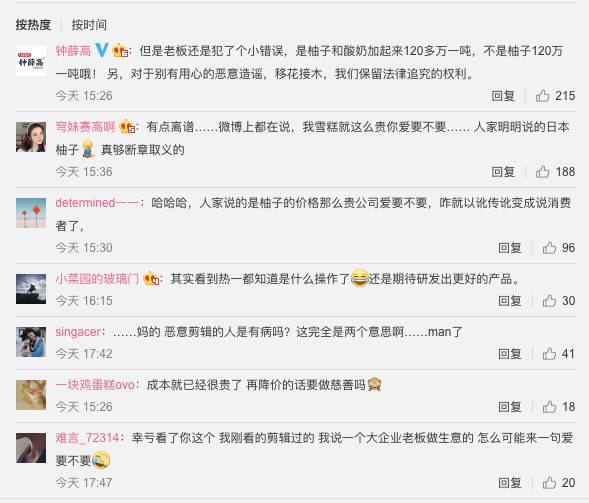 虽然有点马后炮,但“贵”这个话题,一定是钟薛高的“敏感地带”,应该谨慎对待,“你爱买不买”这样的话,在任何语境之下,都应该避免。