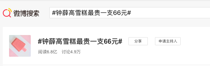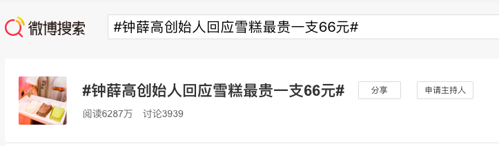 本周二下午,也就是端午节后的第一个工作日,#钟薛高雪糕最贵一支66元#冲上了微博热搜第一条。