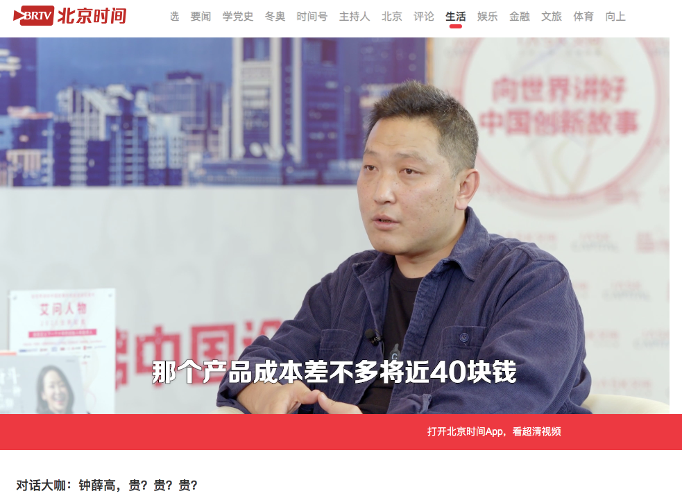 这个短视频呢,来自一档叫《艾问人物》的节目,钟薛高创始人林盛出镜。台标是BTV财经。(请记住这个台标啊,划重点)