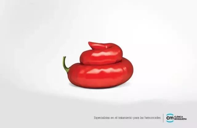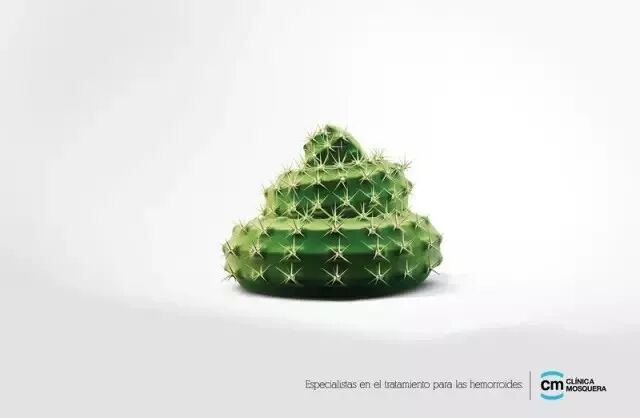 Clinica Mosquera痔疮药的广告,是把长了痔疮时拉的便便与仙人掌、辣椒关联起来:这酸爽,吓得我下意识屁股一紧。