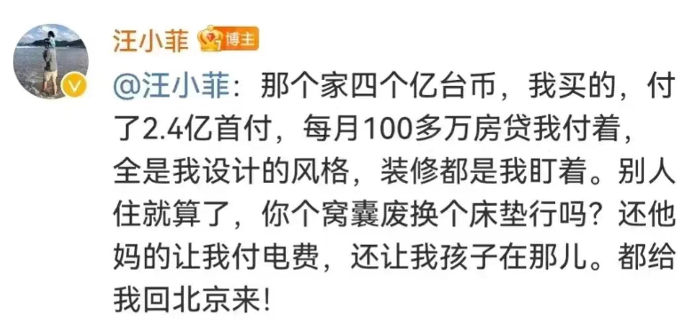 法院已经裁决,汪小菲在台湾的部分资产将会被查封
