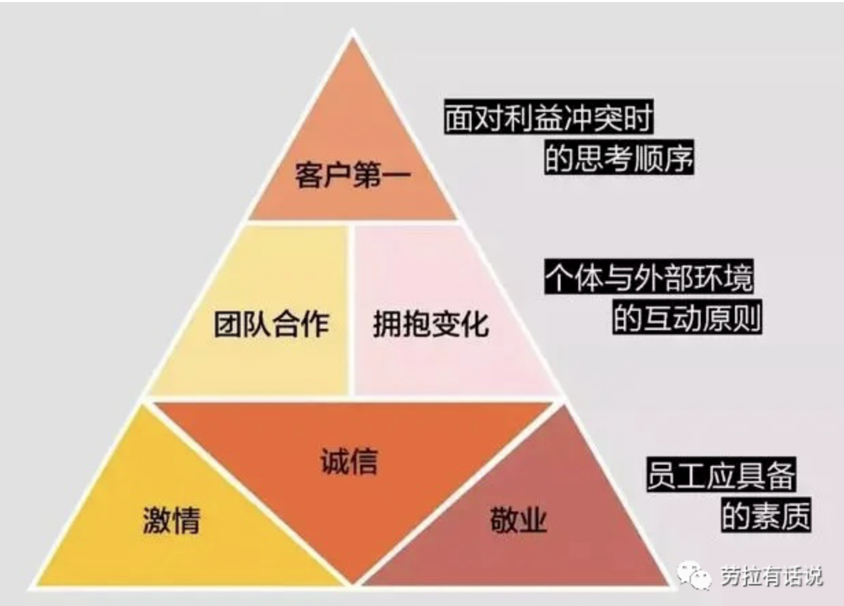首先,文化价值观是不变的底层逻辑,不应受外部竞争环境和战略演进而摇摆和改变;