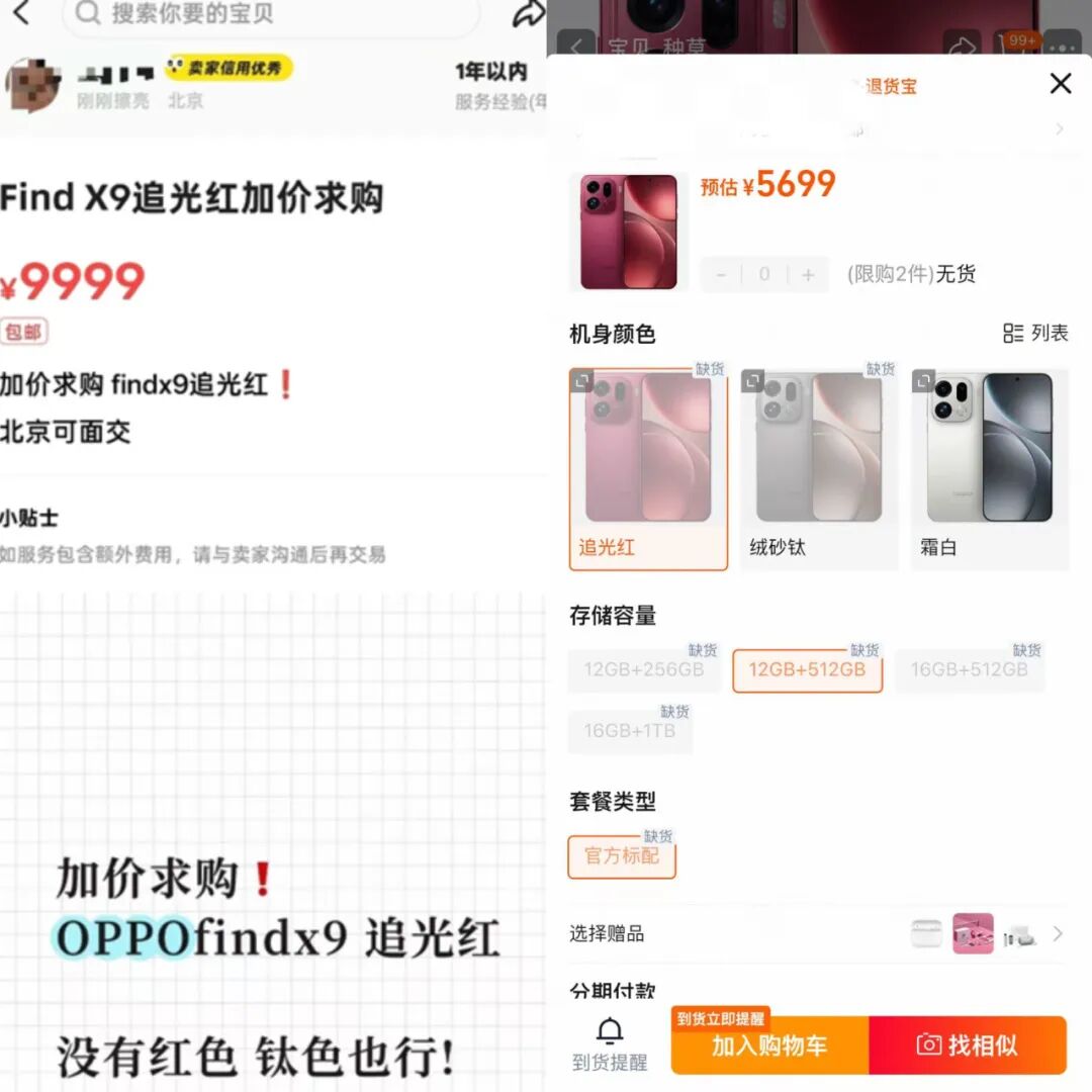 在10月22日首销当天,全国多地OPPO门店出现了排队抢购Find X9系列的热潮,其中“追光红”版本不仅爆卖到多地缺货,甚至还出现了“万元求购”的现象。