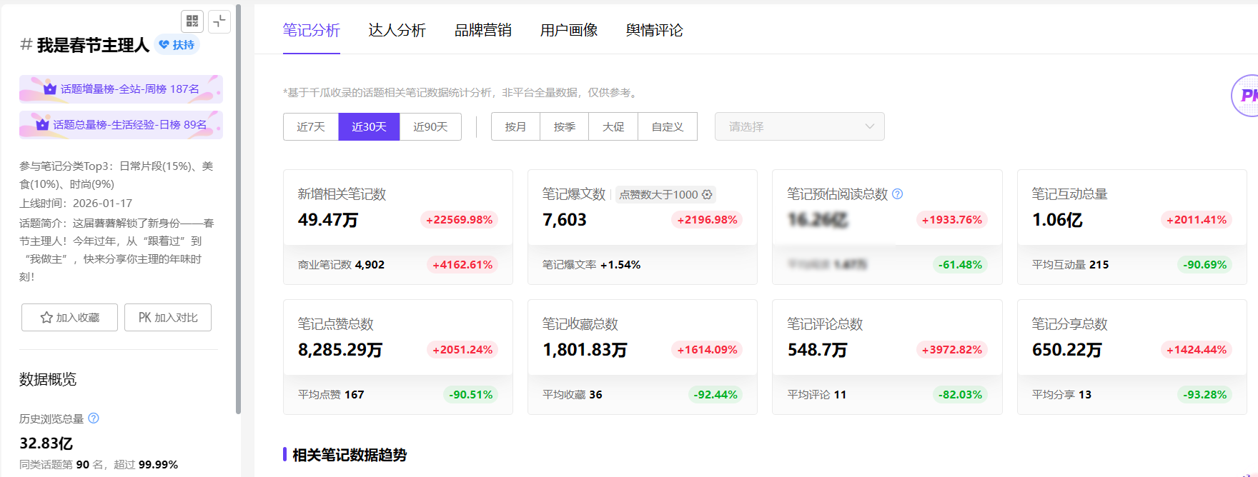 2026年马年春节,#我是春节主理人 话题在小红书浏览量突破30亿,笔记预估互动上亿,更值得关注的是,00后参与者占比超一半——他们正从年味的“被动接受者”转变为“主动创造者”。
