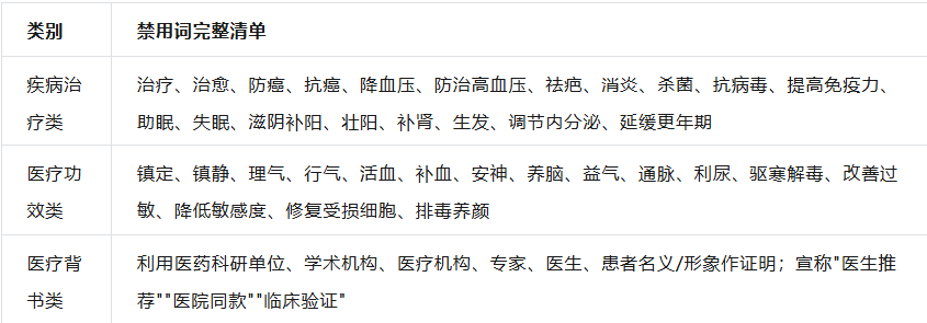 3. 医疗化用语(普通商品严禁涉及)